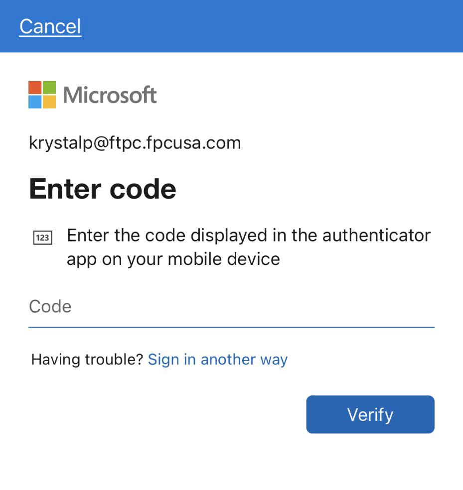 5. Using the Microsoft Authenticator app on your mobile device provide the code requested for