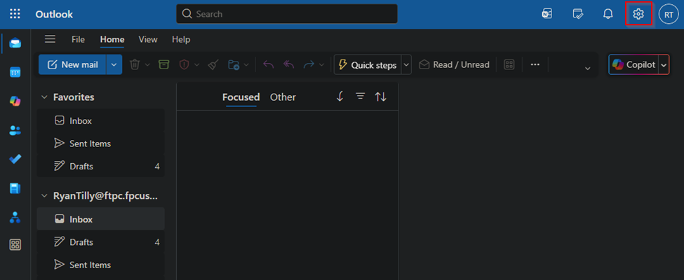 4. Once inside Outlook, click the Settings (gear) icon in the top-right corner.